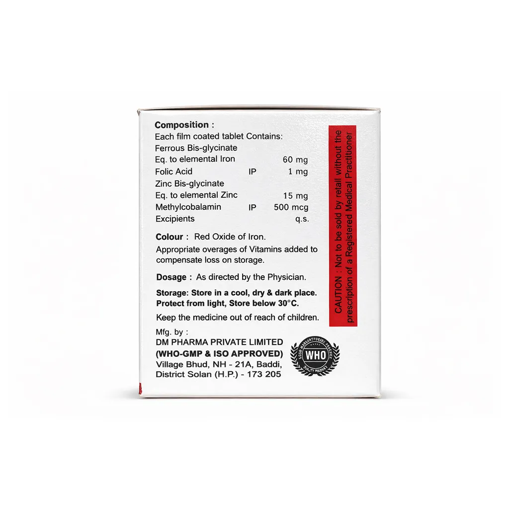 Ferrous Bisglycinate 60mg + Zinc Bisglycinate 15mg + Folic Acid Img + Methylcobalamin 500mcg